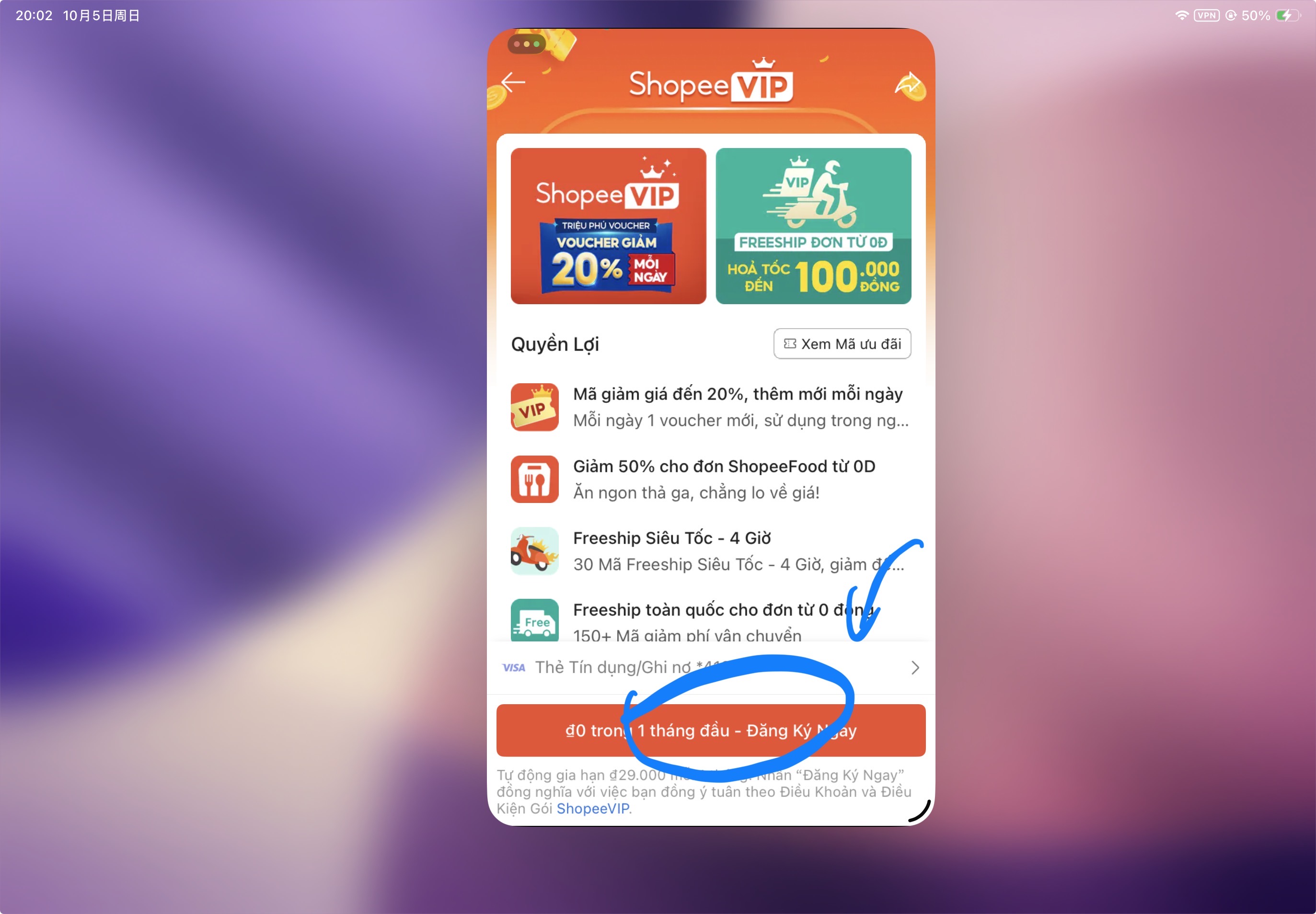 一张可付款 越南虾皮 VIP 的信用卡(自行测试)
